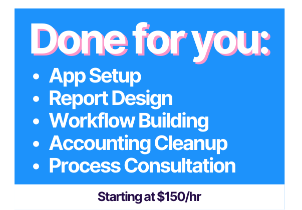 FinOptimal can setup apps, cleanup prior accounting, or design workflows for you. Billed at $150/hr.